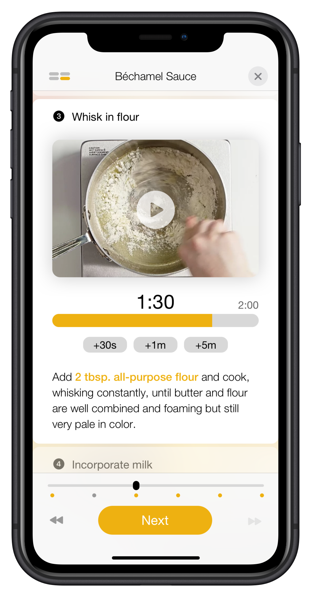 I created an interactive prototype for home cooks to follow 3 different recipes using their phone and a connected cooktop in a lab kitchen outside of Chicago.