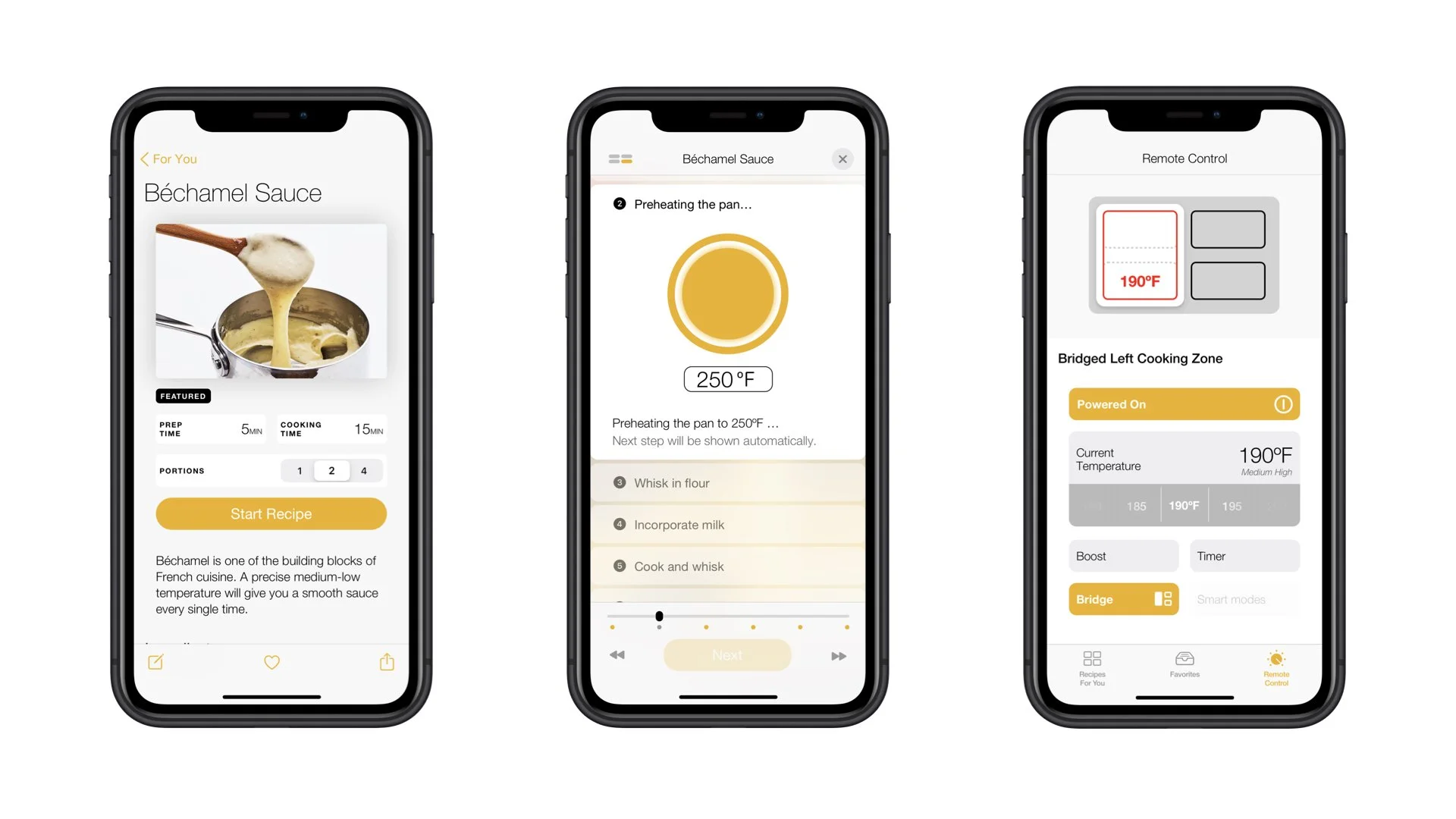 Are home-cooks able to follow a recipe from their phone using an app that controls the cooktop?